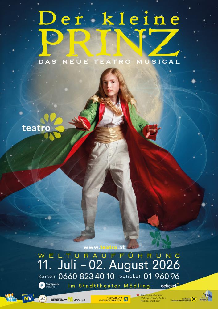 Der kleine Prinz ist ein modernes Kunstmärchen, ein Plädoyer für Freundschaft und Menschlichkeit und gilt als Kritik am Werteverfall der Gesellschaft. Eine berührende und tiefgründige Musiktheater Produktion, in bewährter teatro Manier, wobei auch Humor und Showeinlagen auf den vielen Planeten nicht zu kurz kommen.